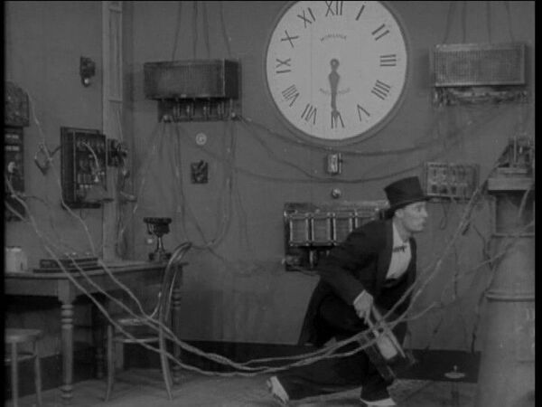 Поэтика “комической школы”13 в значительной степени опирается на технические возможности камеры, свойственное ей трюкачество. Эпистемологический “поворот”, который кинематограф осуществляет, трансформируя пространство и время путем технических манипуляций , не маскируется под повествовательный трюк и не наряжается в феерию. Он обнажен. Онезим-Часовщик действует как кинооператор, ускоряющий движение прохожих: он “машинизируют мир” благодаря камере, подхватывая формулу Аполлинера, и тем самым “машинизируют поэзию”14.