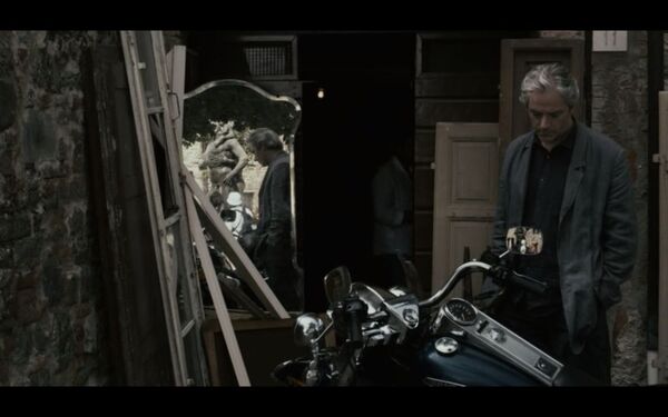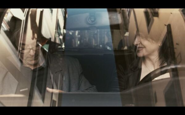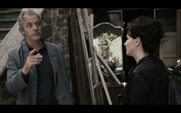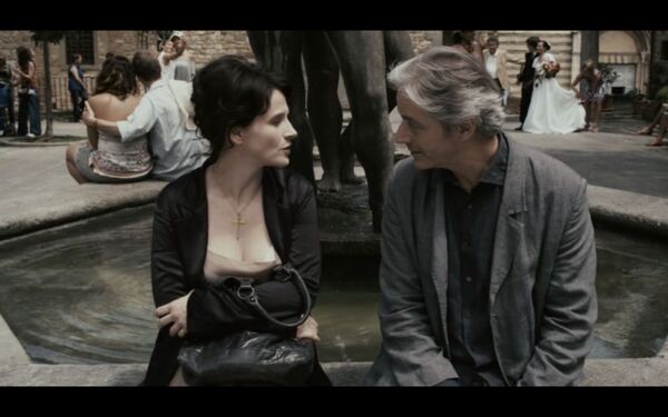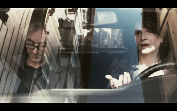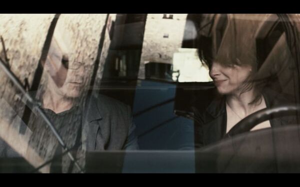 В одном из начальных эпизодов фильма Джеймс и Героиня едут в машине из антикварной лавки в пригород Тосканы. Визуальный материал фильма организован как сложная игра отражений персонажей и городских домов в лобовом стекле машины. Мы видим персонажей сквозь экран, в котором отражается перевернутый мир, частично перекрывающий лица героев.